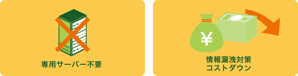 専用サーバーが不要なので、導入コストを抑えつつ情報漏洩対策ができます。