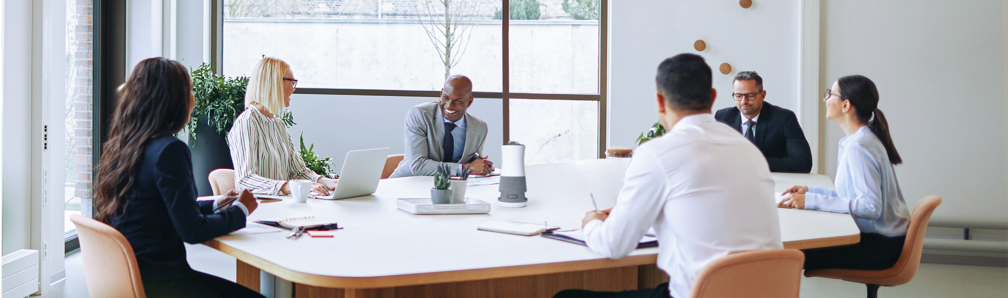 360度カメラ搭載のマイクスピーカーにより、会議室の雰囲気をリアルに感じられるリモート会議を実現します。