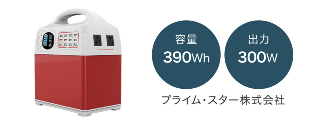 蓄電容量390Wh、最大出力300W、質量5.3kg。