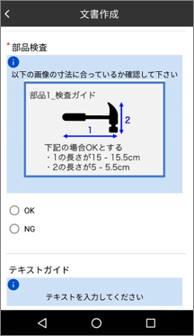 入力項目毎に入力ガイドの設定が可能。項目名だけでは説明が難しい確認方法も、入力ガイドの画像や説明文により正しい確認方法で入力させる事ができます。