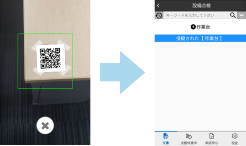 設備や治具毎に点検テンプレートのQRコードを作成し、点検時にはそのQRコードを読んで点検テンプレートを表示。開きたいテンプレートを素早く正確に開けます。