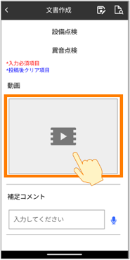 スマートデバイスから文書投稿時に動画を投稿できます。設備点検時に動作異常や異音など現場の情報を正しく共有・記録できます。