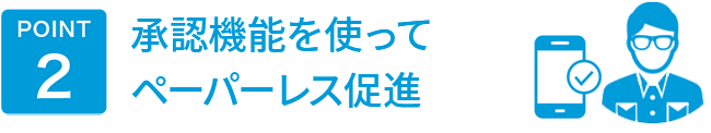 スマートデバイスから投稿した文書は、その場で承認依頼できます。従来のハンコを必要としていた業務をデジタル化できます。