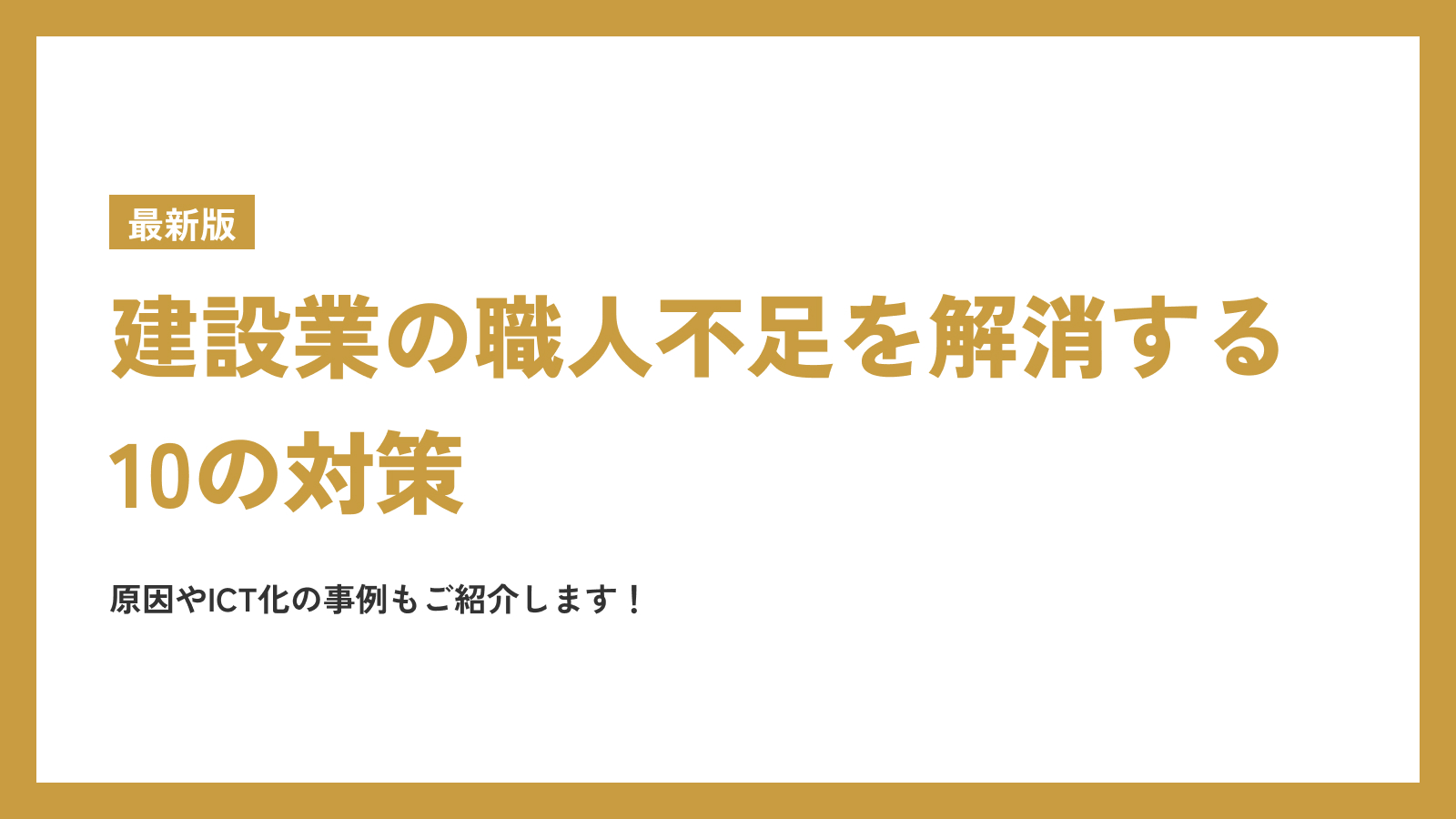 建設業の職人不足が進んでいる原因、建設業の職人不足を解消する対策について解説します。また、建設業の職人不足を防ぐICT化の事例についても紹介しますので、ぜひ参考にしてみてください。