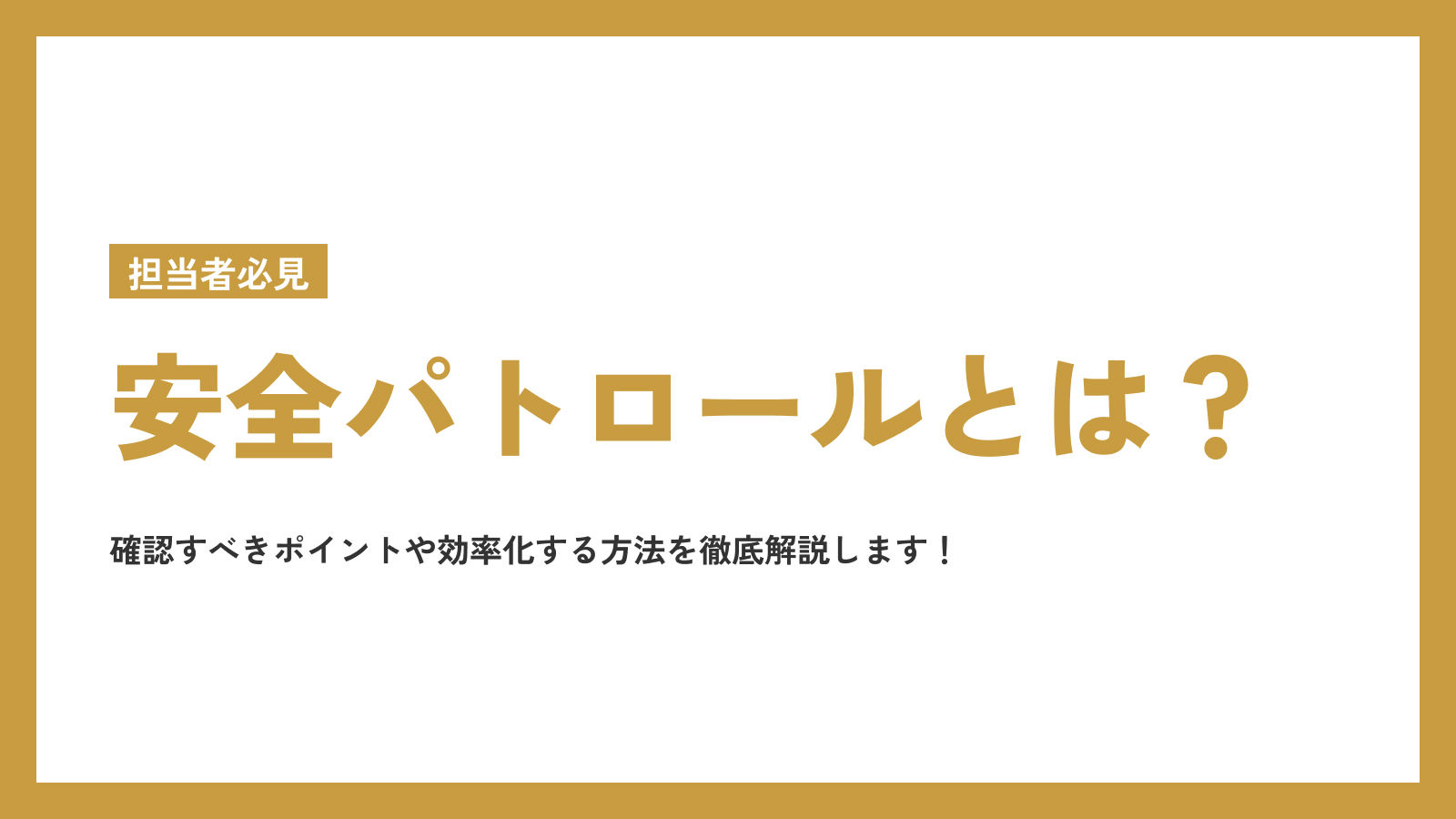 安全パトロールの役割は、現場における労働災害や事故の危険性を早期に発見することです。また、安全上の問題は「確認・捜索・安全化」という手順で解決します。
