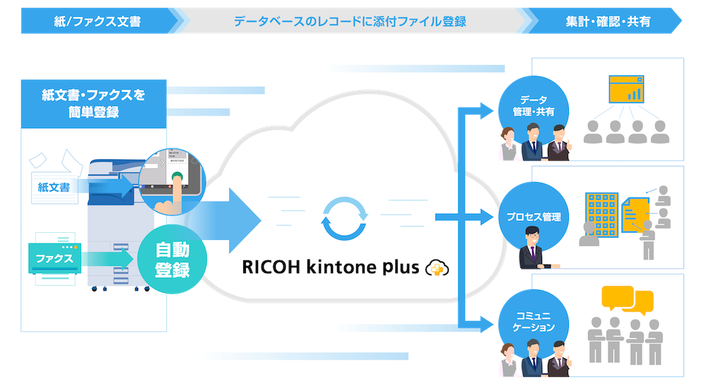 kintoneをもっと有効活⽤したい、紙や表計算ソフトからの脱却をもっと効果的に促進させたい、そうしたお悩みをRICOH kintone plusが解決します。