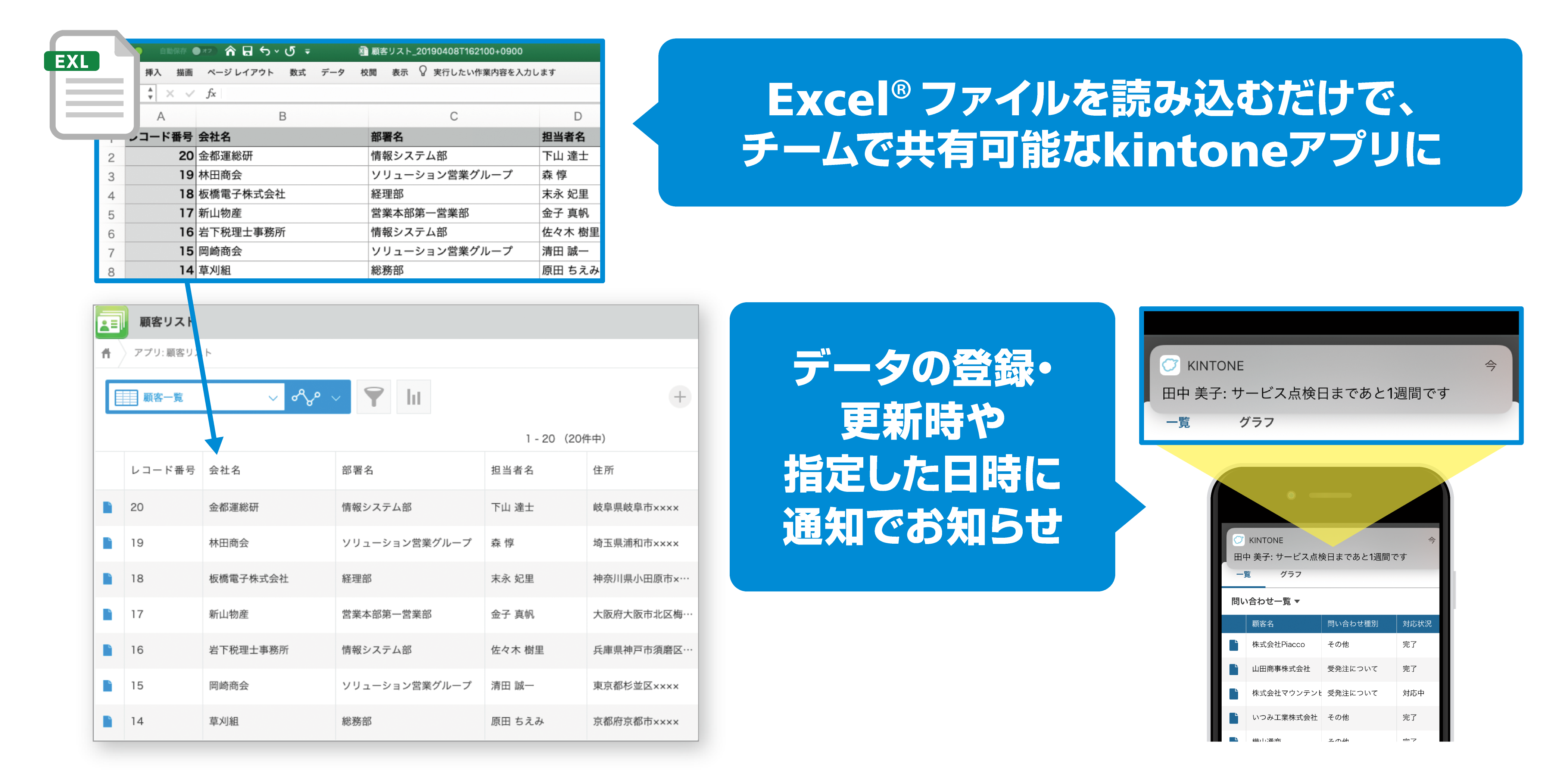 Excel®ファイルを読み込むだけでWebブラウザー上で編集・共有・⼀元管理も可能になります。