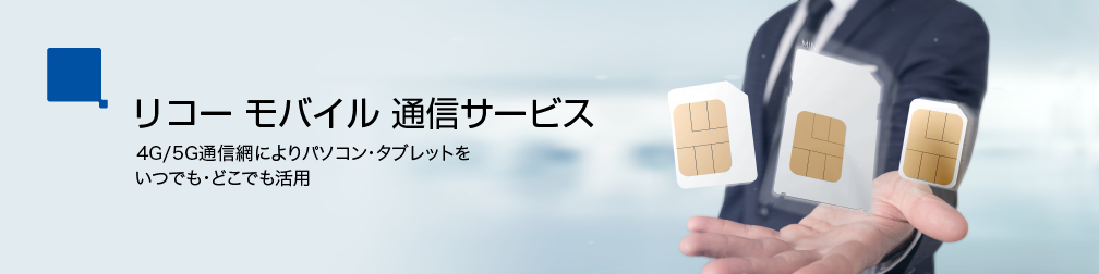 リコー モバイル 通信サービスは、リコージャパンが提供する法人向けモバイルデータ通信サービスです。USIMカード*対応パソコン・タブレットに装着することで、LANやWi-Fi™環境の無い場所でも4G/5G通信による快適なインターネット接続を実現します。また、公衆Wi-Fi™や個人インターネット接続のセキュリティリスクがなく、安心してビジネスに活用できます。