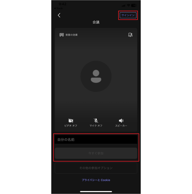 「サインインして参加」を選んだ場合は名前の入力画面には移動せず、すぐに次の工程に移動します。