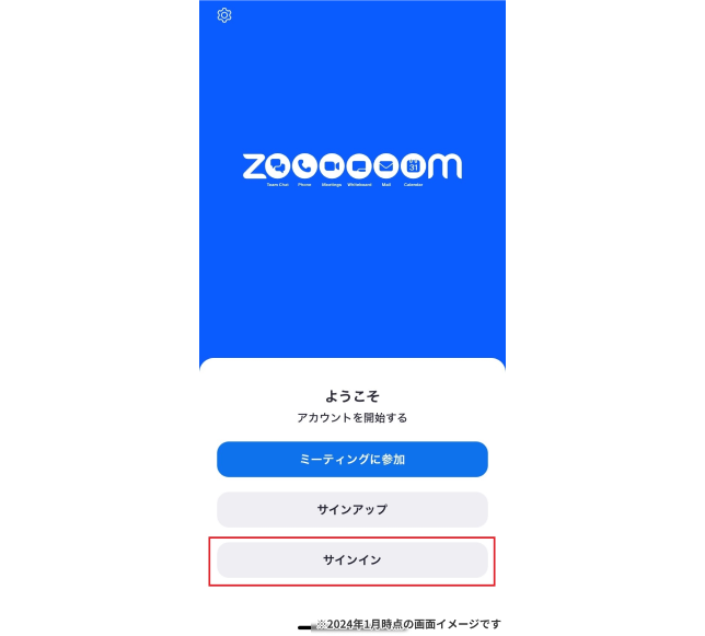 Zoomアプリを開くと上記のような画面が表示されるので、右下の「サインイン」をタップします。