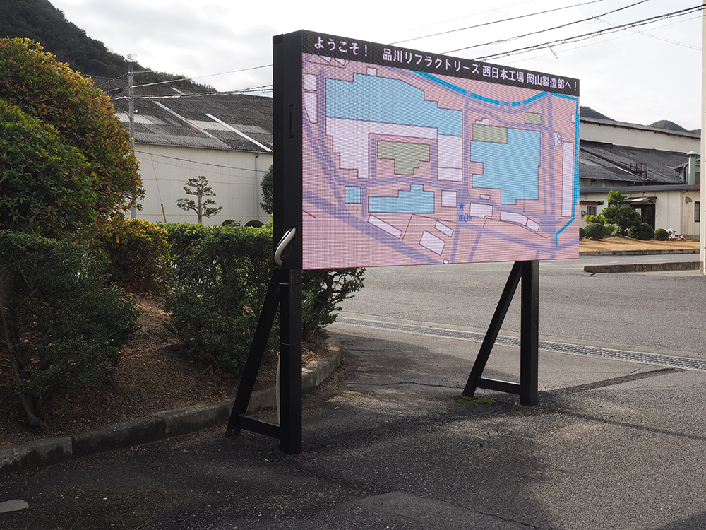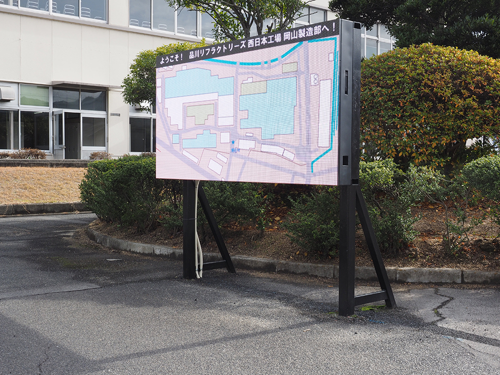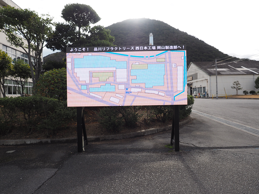 2022年9月より、品川リフラクトリーズ株式会社様 西日本工場 岡山製造部にリコーデジタルサイネージをご導入いただきました。LEDビジョンにリコーデジタルサイネージ Type2を接続し、工場敷地内に設置。