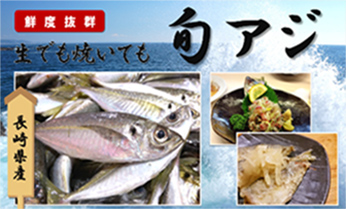 長崎県産旬アジ、商品を宣伝するデジタルサイネージ例