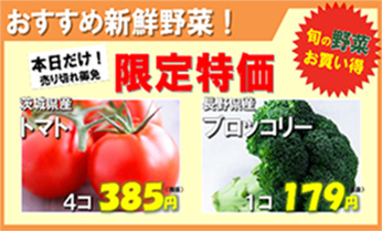 おすすめ新鮮野菜限定特価、野菜を宣伝するデジタルサイネージ例