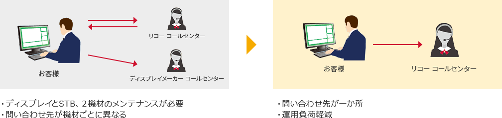 STBレスのため、メンテナンスや管理が簡単です。お問い合わせも、お電話一本でリコーコールセンターがワンストップで対応いたします。