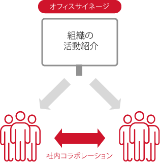 企業でのサイネージ活用事例をご紹介します。オフィスサイネージ導入により、情報共有の促進を図ることができます。