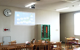 社員の視聴率が高いエレベータ前には、プロジェクターを使って簡単設置