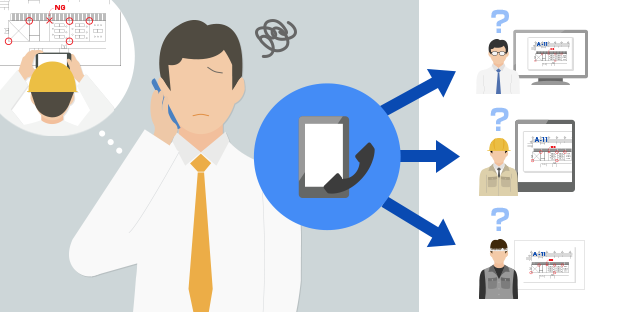 施工案件で見つけた紙文書の誤りを工事関係者に共有したいが、電話やスマートデバイスの撮影だけでは正確に情報を伝えられるか心配。