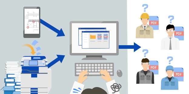 スキャンするだけで大量の紙文書をスピーディーに保存・一元管理できます。また、関係者同士が正確に情報共有できるなど、「施工管理情報の一元管理」も可能です。