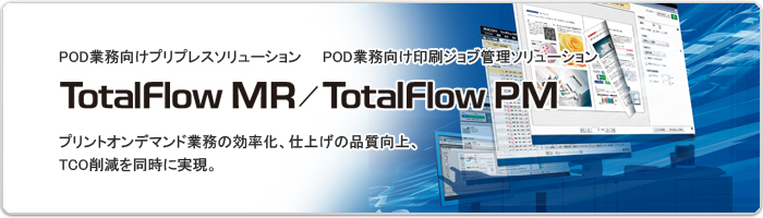 小ロットへの対応・印刷コスト削減・短納期・セキュリティを実現するPOD(プリント・オンデマンド)。様々なニーズに柔軟に応える印刷システムが企業内の印刷部門、商業印刷の分野でますます注目され、導入が進んでいます。しかし、PODシステムを効率的に稼働させ目的の印刷物を仕上げるためには、的確な印刷ジョブ作成のスキルが必要です。また、システムには高価な運用・保守費用が必要となり、TCOに大きな負担をかけます。リコーのPOD業務向けソリューション『TotalFlow MR』と『TotalFlow PM』は、オペレーターにとってより使いやすい操作環境を提供することで、より効率的に高品質の印刷仕上がりをサポート。同時に、印刷設定ミスの低減、効率的なマシンの運用管理によりTCOの最適化を実現できます。