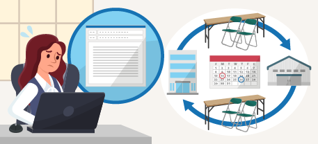 イベントの⽇時・会場・使⽤備品のリストを毎回メールで担当者に送っており効率が悪い。