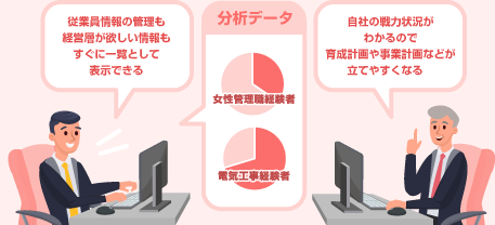実務経験者のリストや女性管理職候補などをリスト化できるため、経営戦略資料としても活用できるようになった。