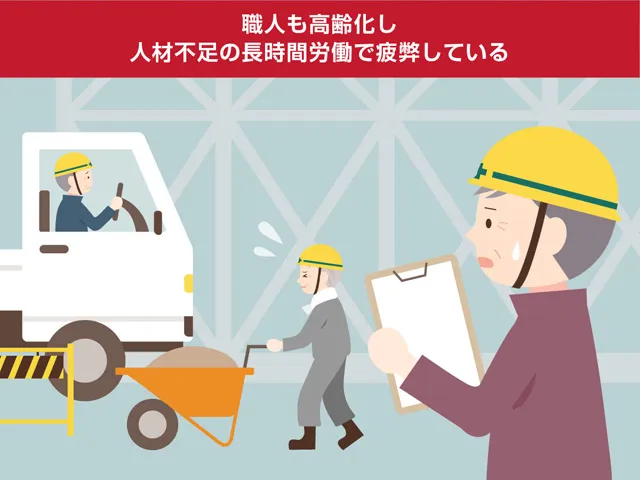 職人の高齢化や人手不足など、なかなか解決しにくい問題を抱えている建築業界。業務のIT化を進め、スマートな働き方を実現していくことが、未来を切り拓くカギとなります。たとえば、競争が激化する市場でも他社との差別化を図り、確かな受注へとつなげていく営業力。実行予算に基づいて、計画どおりに利益を確保する管理力。企業の情報を魅力的に伝え、業界に若い働き手を招き入れる発信力。この3本柱を、ITの活用によって叶えていきませんか?
