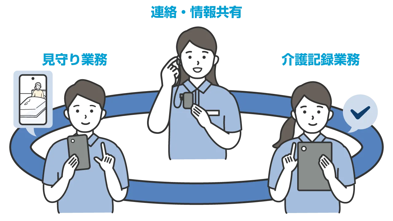 見守り機器 複数利用者を同時に見守り、複数介護職員に同時に情報共有できる