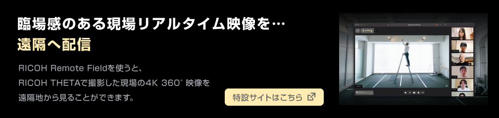 RICOH Remote Fieldを使うと、RICOH THETAで撮影した現場の4K 360°映像を遠隔地から見ることができます。