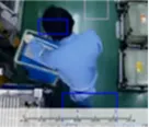 入荷配膳工程より運搬されてきた配膳トレイ及び作業者を自動検知。それらのIN-OUTの画像を検知することでタクトタイムを計測し、バラツキの要因分析を映像でサポートします。