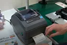組立最終工程まで完了するとラベルプリンターが連動。カメラによる判定でラベルを発行。その場で貼ることで、貼り忘れや貼り間違いを抑止致します。