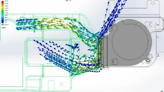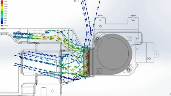 実機のシミュレーションにより、気流が乱れていることがわかる