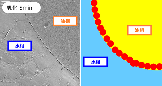 | 材料が液中で狙い通りの動きをしているか分からない。 | 液中の材料の状態を可視化し、品質向上・機能改善に貢献した。 |