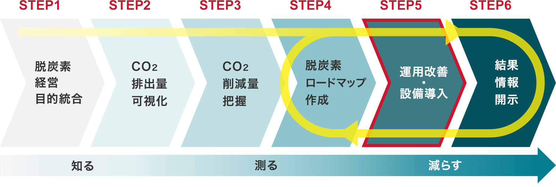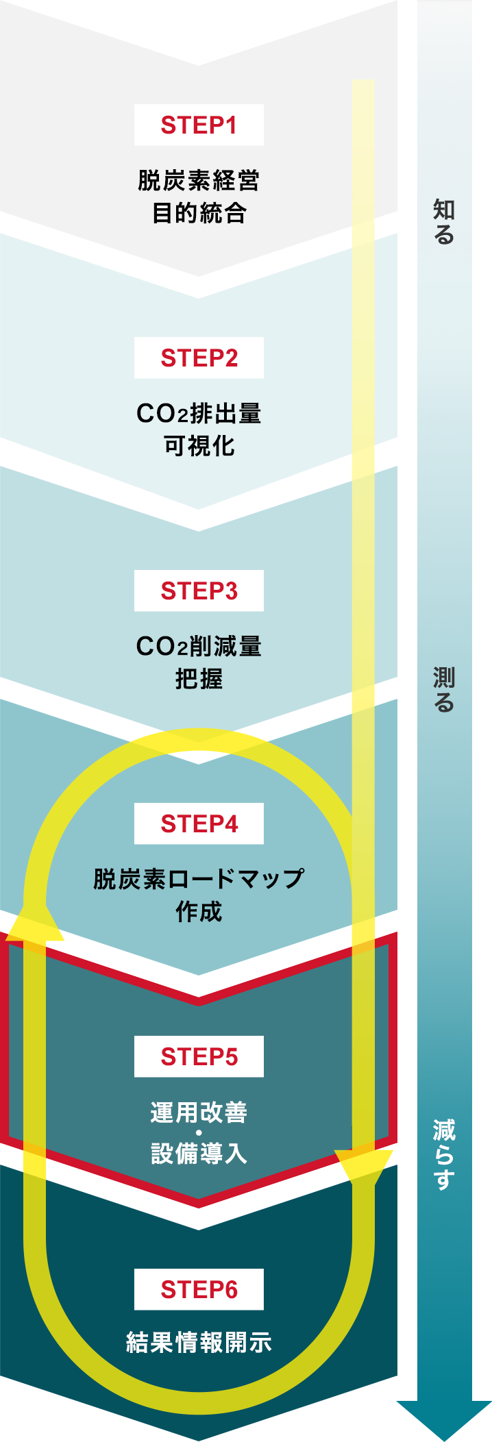 脱炭素STEPに沿ってCO2排出量可視化から具体的な導入まで、お客様の状況に合わせて提案するパッケージです。