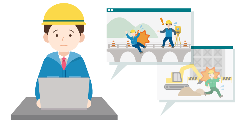 現場の安全教育において、作業員に対し、どのようなシーンでリスクが発生するのかをCGやイメージを活用した教育資料を準備することができます。
