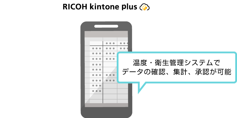 RICOH kintone plusに自動で取得される温度データを確認できる『温度管理システム』と、一般衛生管理や重要管理を記録する『衛生管理システム』には記録表テンプレートを標準搭載しております。またお客様の運用に合わせたカスタマイズも容易に可能ですので、ペーパーレス運用にご活用ください。