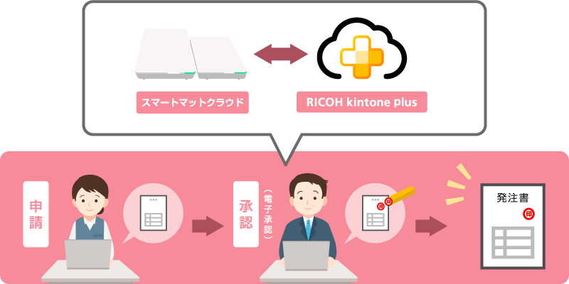 RICOH kintone plusを活用すれば発注時の承認フローや注文書作成もすぐに実現することができます。