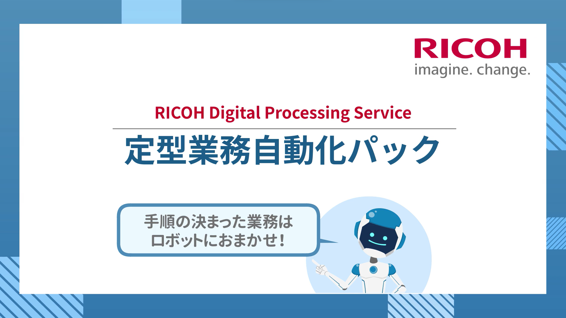 リコージャパンの「定型業務自動化パック」は、ルールに基づき人の判断を必要としない定型業務をRPAで自動化することで、企業の人手不足を解消し、生産性向上を実現します。