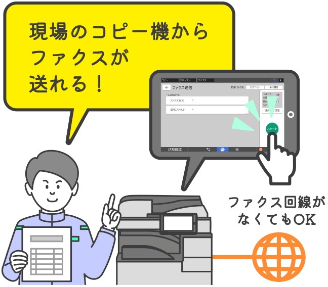 ファクス機能がないリコー複合機でも、インターネットに接続されていれば、ファクス送信できます。