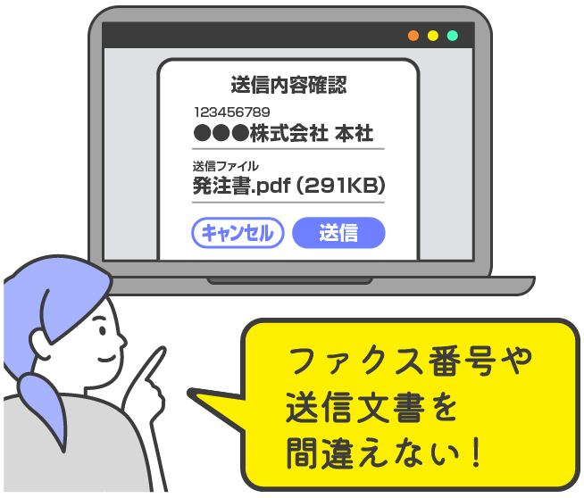短縮ダイヤル利用時は送信番号を変更できず、さらに送信前の最終確認で誤送信を防げます。