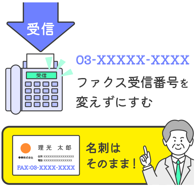 ファクス受信は従来からのファクス機器を利用し、受信番号は変わりません。