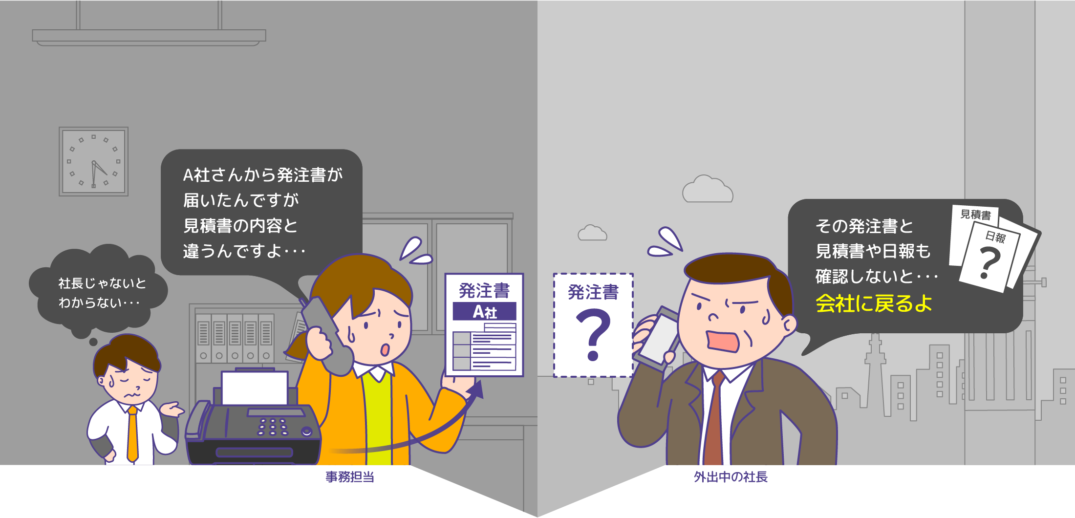 社長が帰社しないと、受注対応できないことも・・・