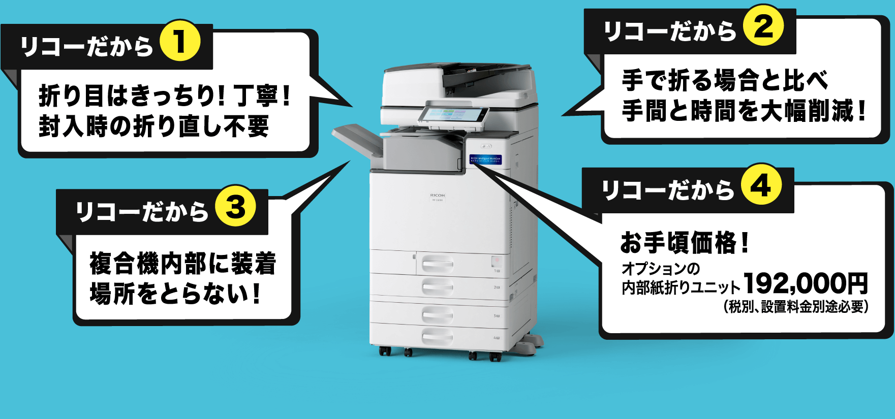 ※折りができる用紙サイズと用紙厚に制約があります。詳細は販売担当者にご確認ください。