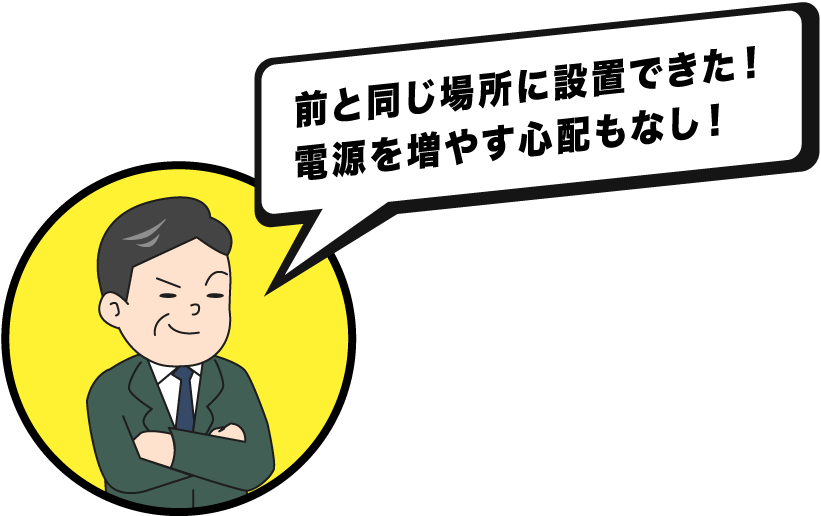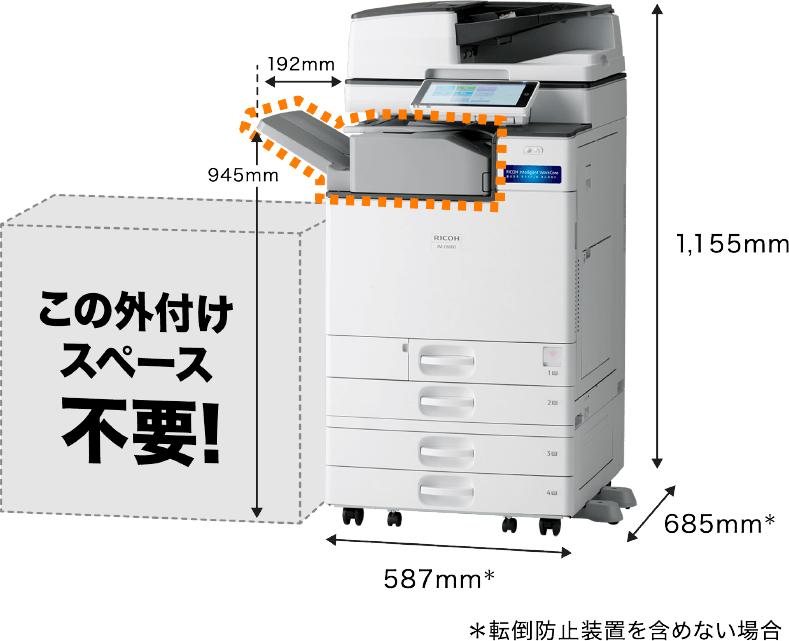 紙折りユニットは複合機本体の電源で動作し、専用の電源は不要です。電源の限られた現場事務所などでも容易に設置・活用できます。