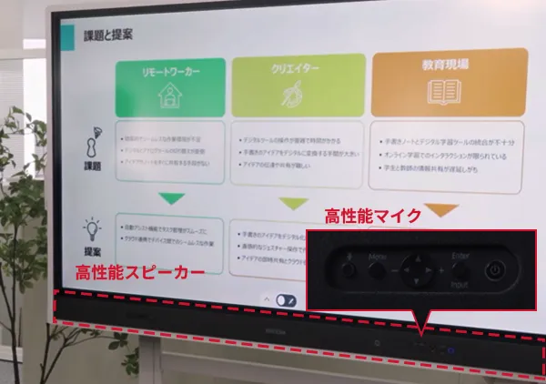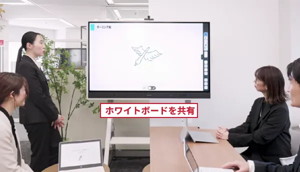 パソコンなどの端末の情報をディスプレイに表示し手書きで書き込みをしたり、Web会議を開催したり、クラウド上でリアルタイムに書き込んだ内容を共有が可能です。