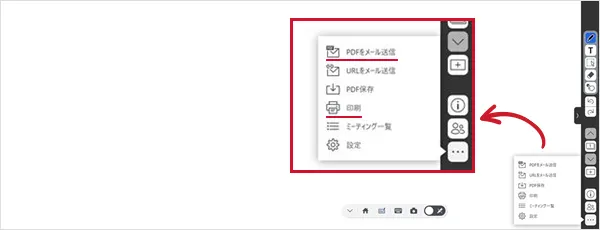 ホワイトボードのメール送信機能を使うと、メールの宛先にRICOH Collaboration Board Cloudの参加者が自動的にセットされます。Outlook連携でRICOH Collaboration Board Cloudを作成していれば、Outlookスケジュールの参加者がそのままRICOH Collaboration Board Cloudの参加者として登録されるので、そのまま参加者を追加せずにURLメール送信が可能です。