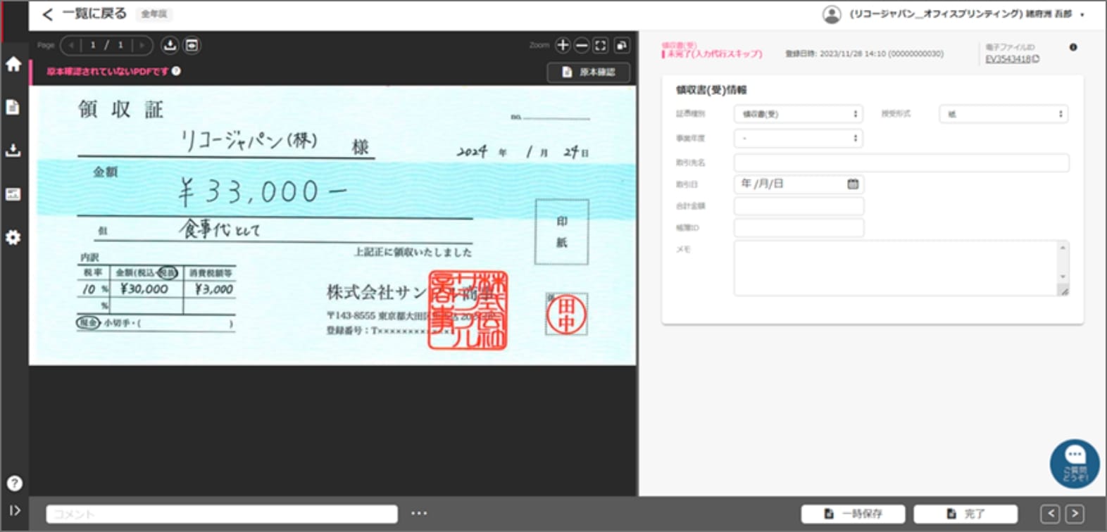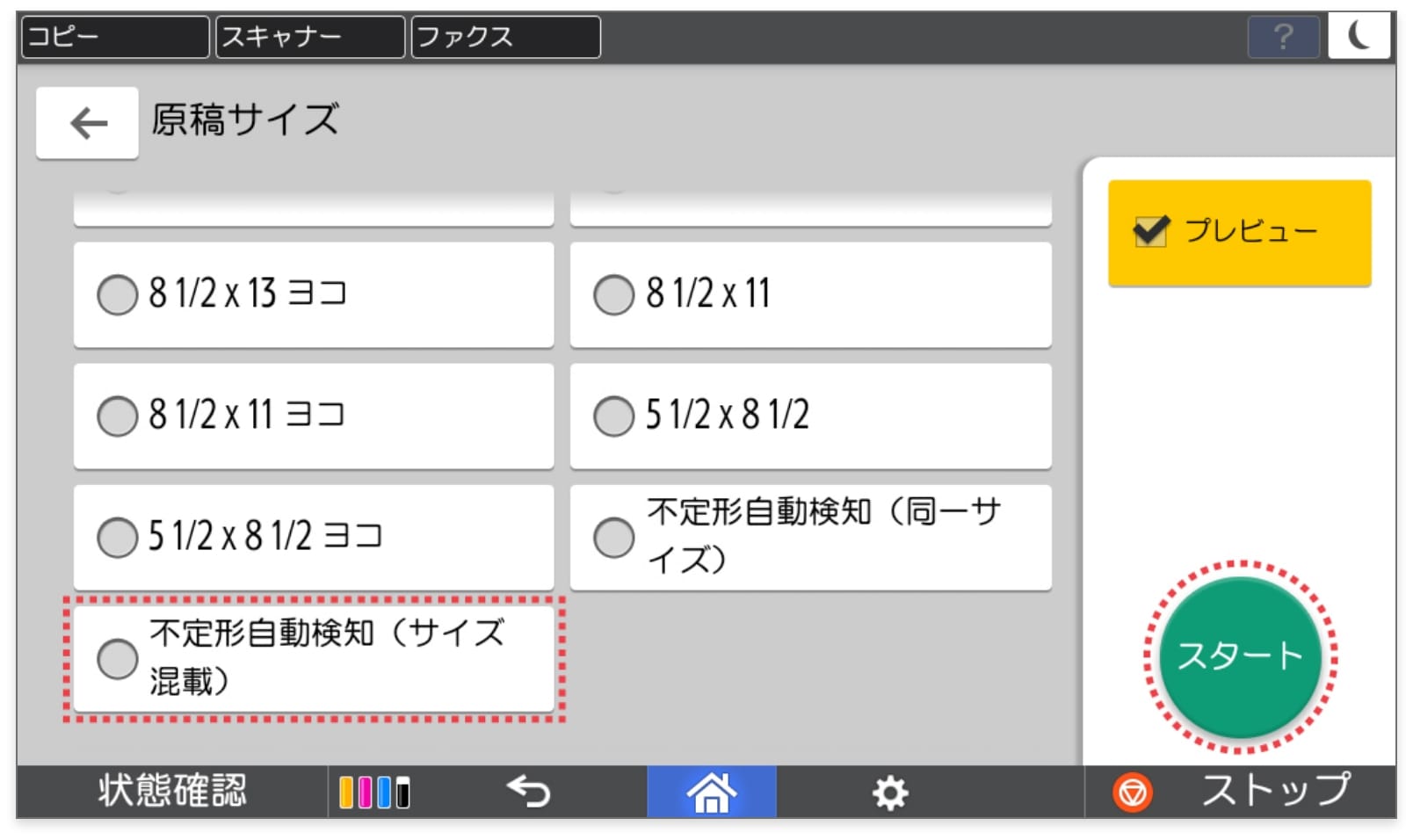 不定形の原稿サイズを自動検知し、電子化。手作業でサイズを測定したり、複合機に入力する必要はありません。