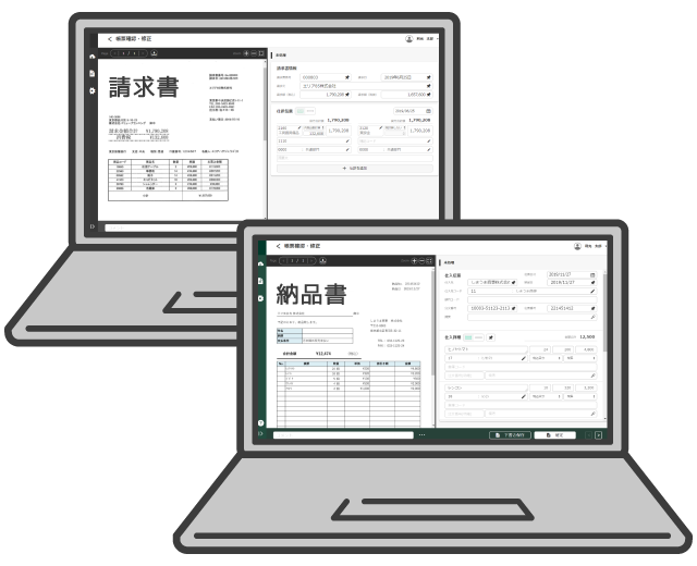 届いた請求書や納品書を読み込ませるだけで、AI-OCRが即時データ化し内容確認可能。