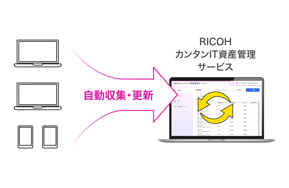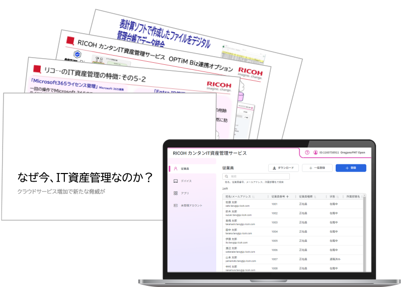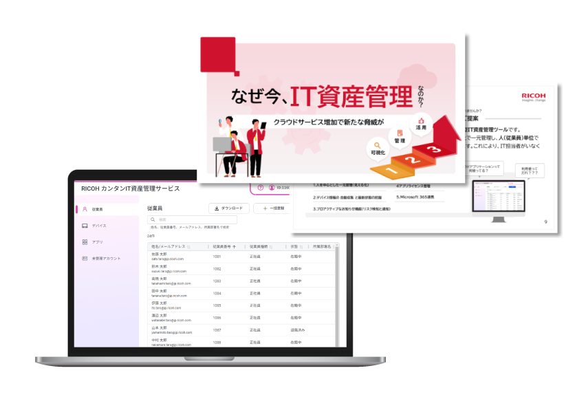 「RICOH カンタンIT資産管理サービス」導入によるIT資産の⼀元管理で、従来の様々な課題を解決され、⽣産性の向上につながりました。
