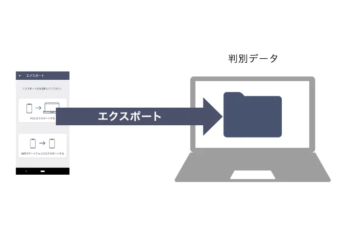 判別データをパソコンにエクスポートできるため、データの加工や編集作業が可能。