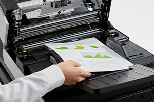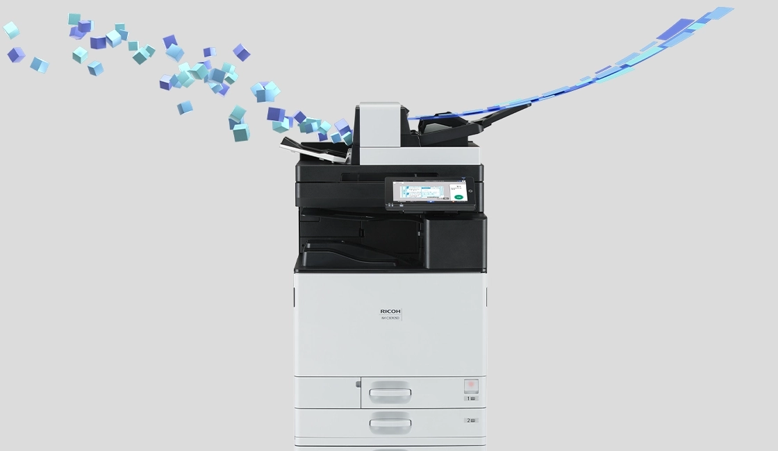 A リコーの「SDモデル」は、業務用スキャナーで定評のある株式会社PFUの用紙搬送技術を搭載し、電子化・データ活用に特化したA3フルカラー複合機です。多様な原稿を効率的にスキャンできる点が特長です。